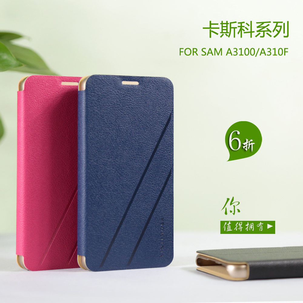 【GooMea】2免運 卡斯科 站立 皮套Samsung三星Galaxy A3 2016手機皮套 保護套 保護殼 3色選