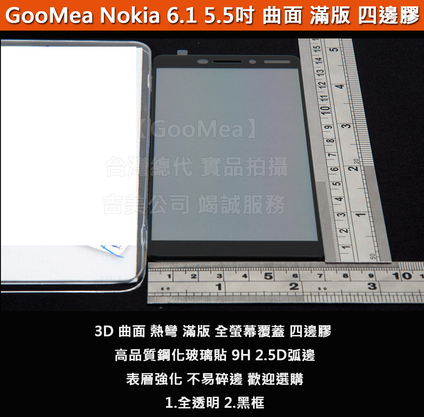 【GooMea】4免運 曲面 滿版 邊膠 鋼化玻璃膜 Nokia 6.1 5.5吋 硬9H 阻藍光 抗指紋