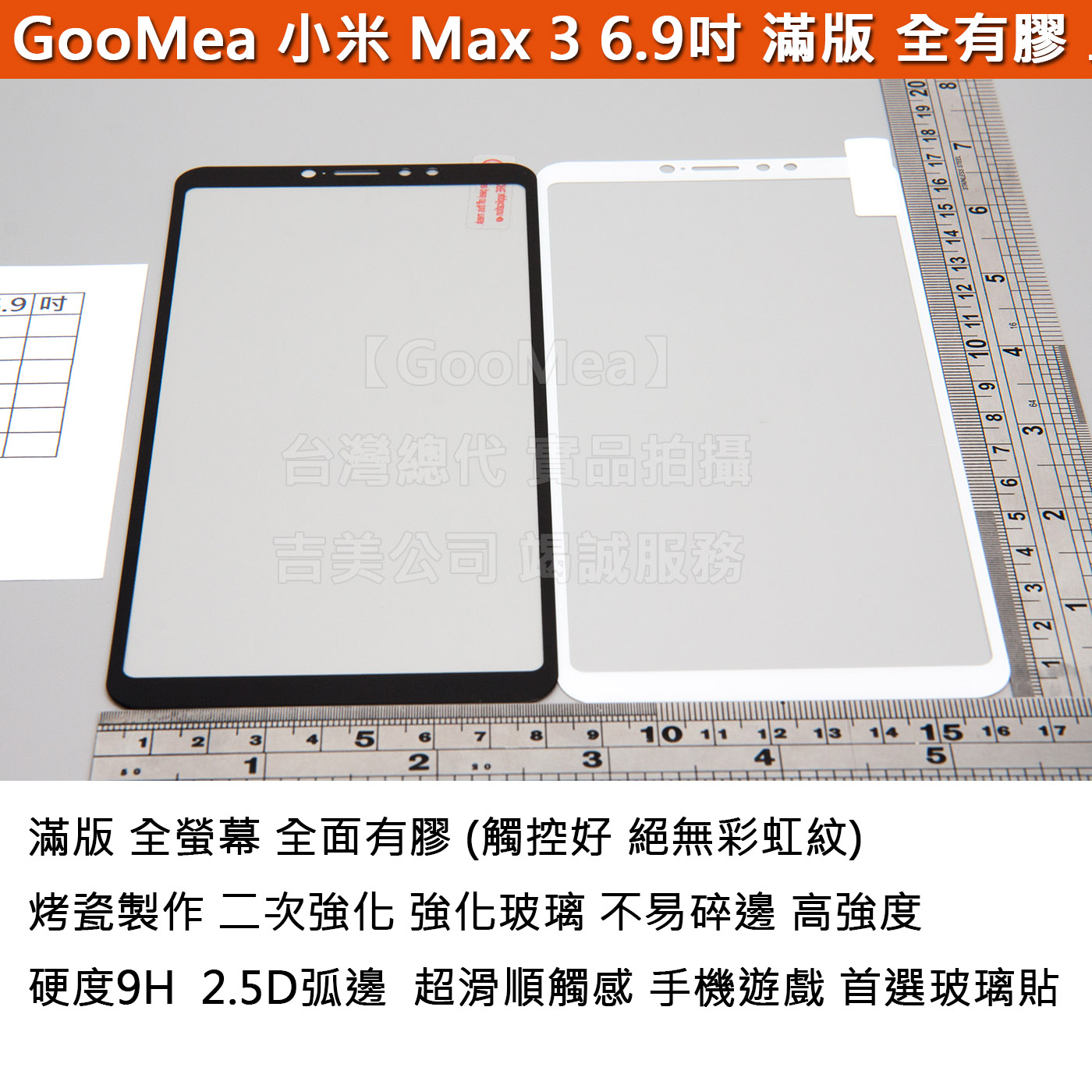 【GooMea】4免運 小米 Max 3 6.9吋 平面滿版 烤瓷 二次強化 防爆玻璃貼 全有膠 阻藍光
