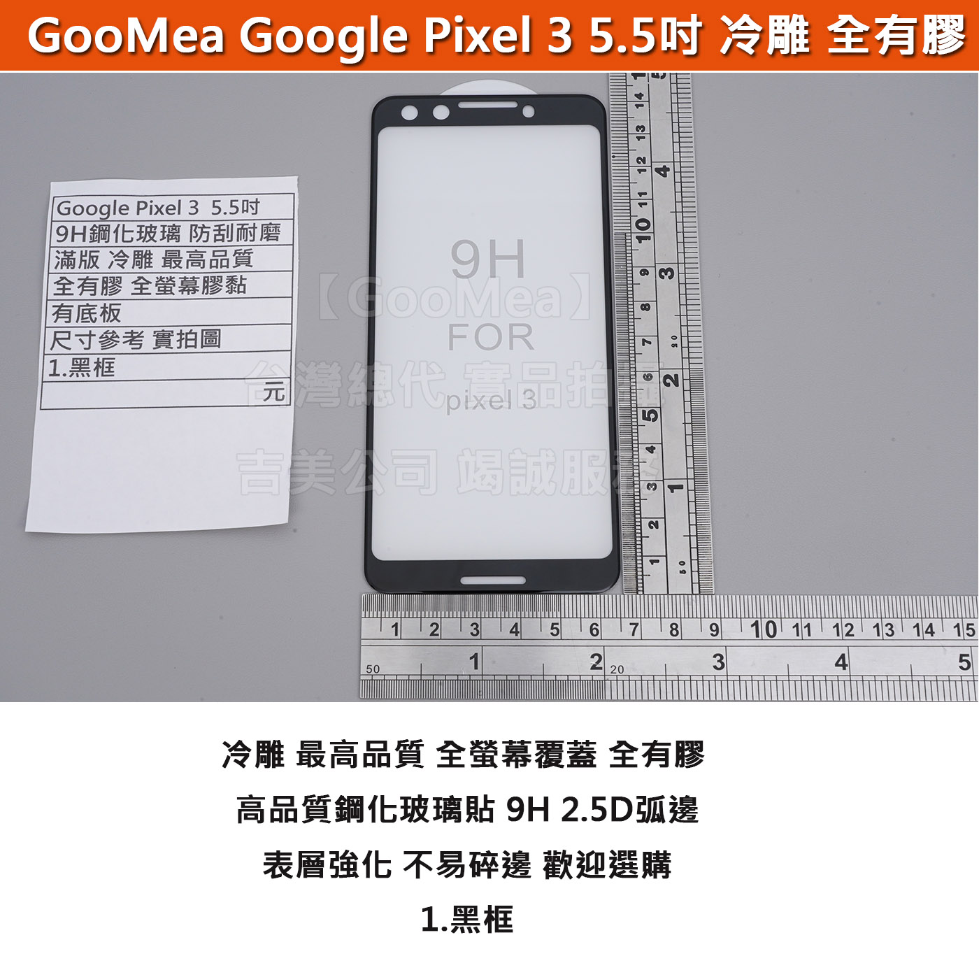 【GooMea】4免運 滿版 冷雕 Google Pixel 3 最高品質 防爆玻璃貼全有膠有底板硬9H弧2.5D