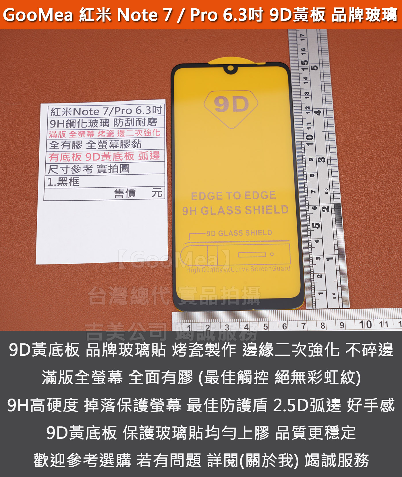 【GooMea】4免運 紅米 Note 7 / Note 7 Pro 玻璃 頂級烤瓷 邊緣二次強化 全有膠 黃底板 9D