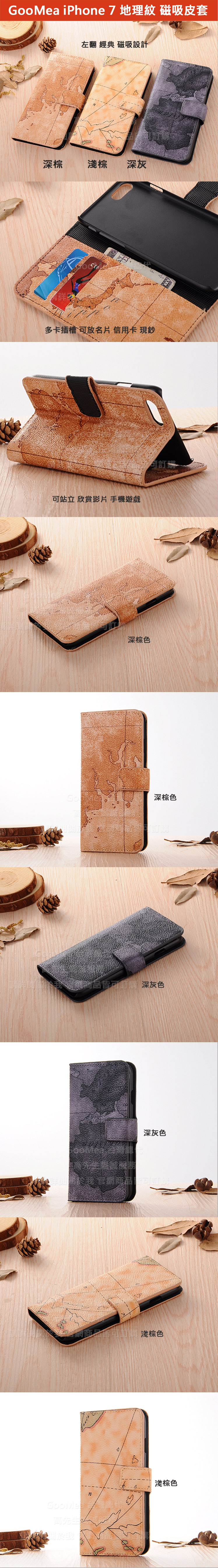 【GooMea】2免運iPhone 7 4.7吋Plus 5.5吋 皮套 地理紋 磁吸 插卡 站立 保護殼手機套多色